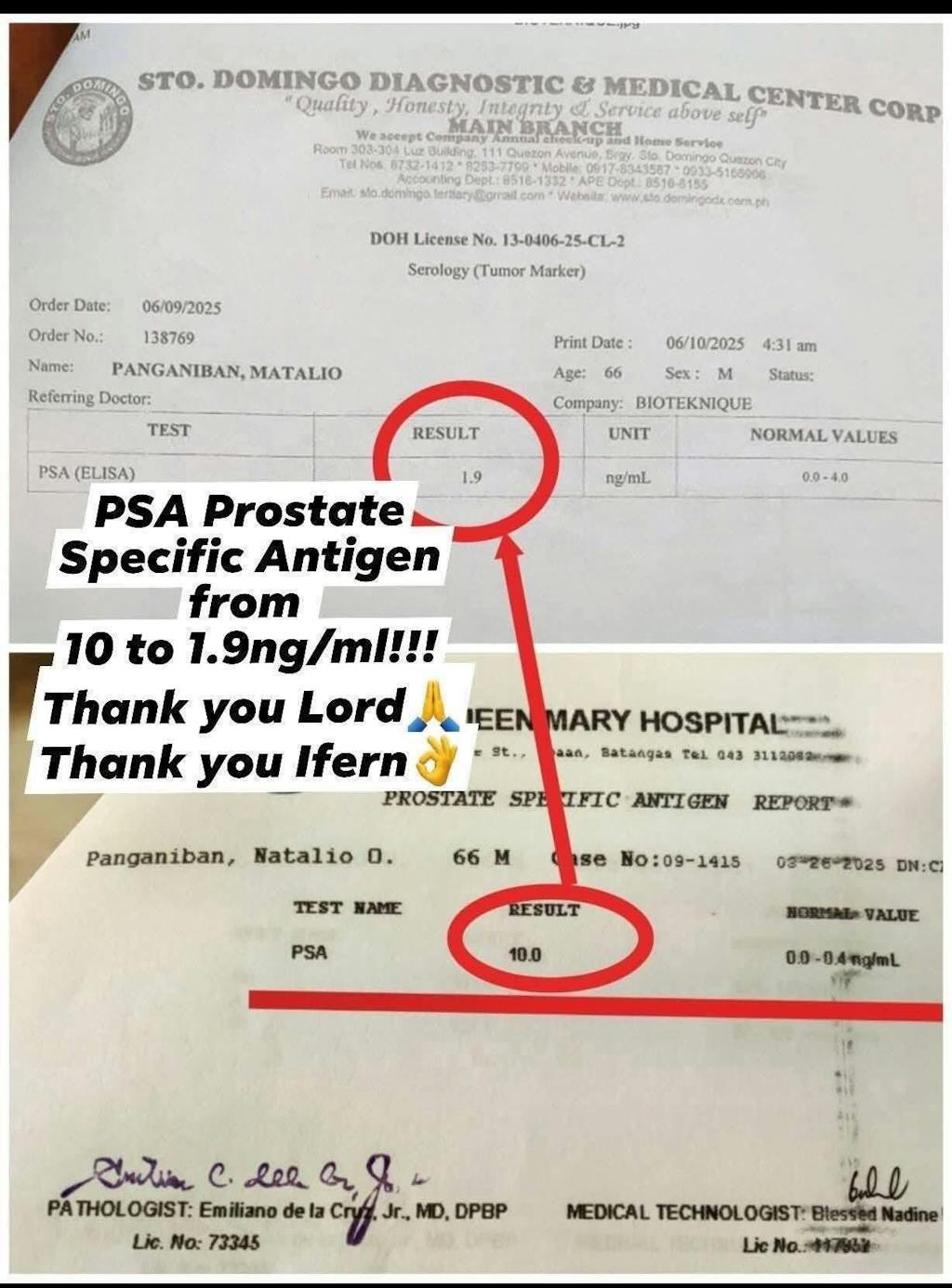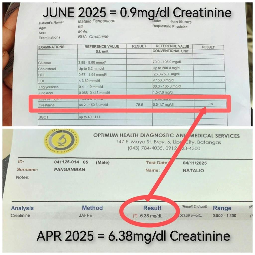 Hi, I’m Joey Panganiban, and I want to share how I-fern’s F-D3X and Power Trio saved my dad, Natalio! My dad was really sick with kidney problems, prostate issues, and gout arthritis. His test results were bad—his creatinine level was 6.38, and his prostate PSA was 10. Doctors said he needed dialysis. But then we found I-fern’s Power Trio: Fern-D, Fern-Activ, and MilkCa. After taking them, my dad didn’t need to go to the hospital for 5 whole years! 😊 His test results got so much better—his creatinine dropped to 0.9 mg/dl, and his PSA went down to 1.9 ng/ml!