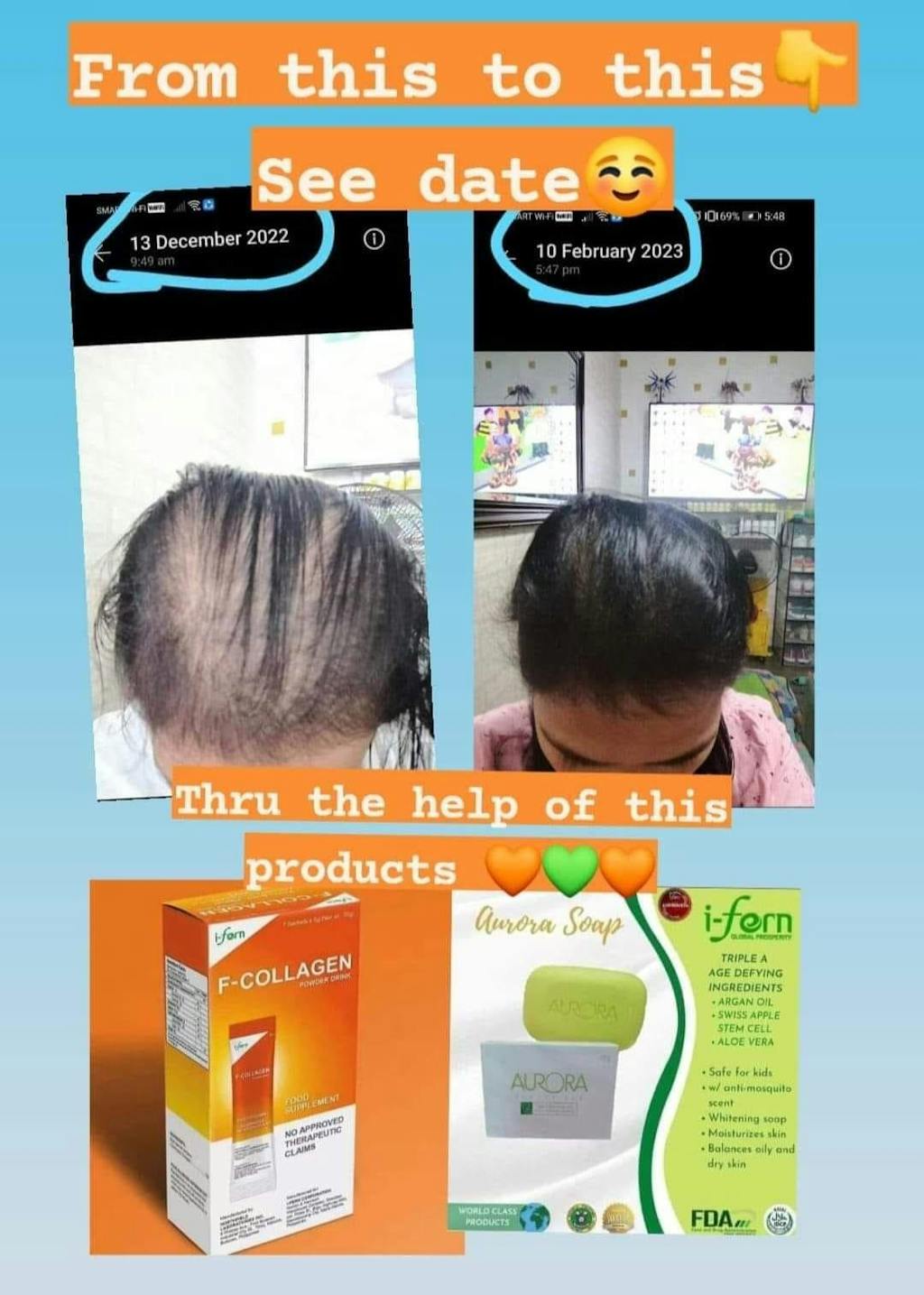 I’m sharing a real testimonial about how I-FERN’s F-Collagen and Aurora Bar Soap helped me tackle hair fall and hair loss.💚🧡 Struggling with thinning hair and excessive hair fall was frustrating, but these products turned things around for me, and I have before and after photos to show the incredible results! 💪